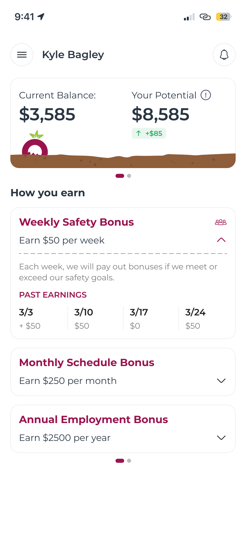 It's gamified and shows current balance, earning campaigns (how they can earn money), past earnings, and importantly, potential earnings over the next 12 months to encourage retention.